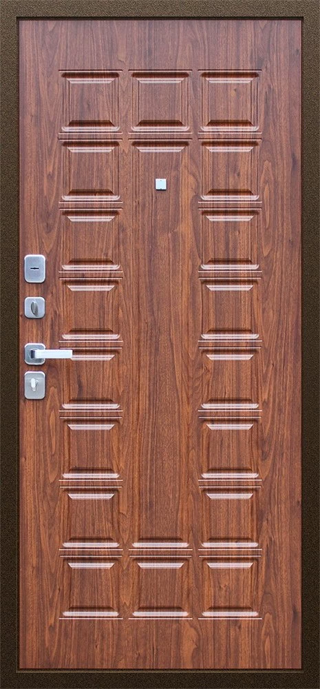 Надежная входная Дверь Спартак Орех темный премиум класса по цене 33 983 руб. Большая толщина стали защитит от проникновения в ваш дом, квартиру или коттедж. Используется очень качественная фурнитура: замки, цилиндры, ручки, защелки. Покрытие и отделка двери изготовлено под внимательным контролем производителя. Дверь имеет долгий срок службы и гарантию.
